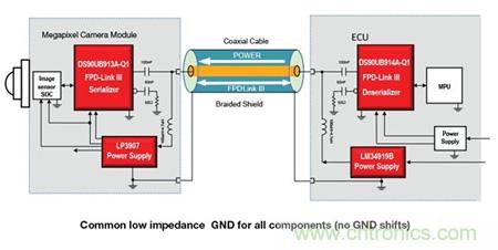 高速串行数字链路连接视频组件,可在摄像头的数字成像器与数字 LCD 显示屏之间实现无缝连接。汽车视频链路中部署的最常用及最可靠高速数字接口技术基于 ANSI/TIA/EIA-644-A 低电压差分信号 (LVDS) 标准。LVDS 可提供一个稳健的数据传输标准,支持远距离、低功耗、高噪声抑制性以及低 EMI。LVDS 采用差分方式(而非接地所参考的单端信号)实现所需的链路属性。