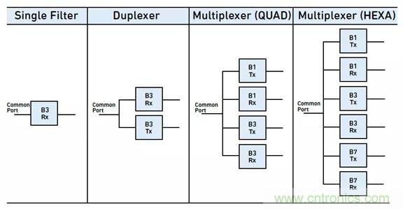 双工器、三工器、四工器,甚至是六工器,这类设备统称为多路复用器。多路复用器可将多个滤波器整合在一个器件中,从而帮助设计人员节省空间、简化设计、满足性能要求,同时还能避免干扰。