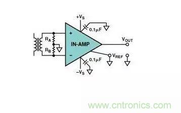 同样的原则也可以应用到变压器耦合输入电路(见图6),除非变压器的次级有中间抽头,它可以接地或接VCM。