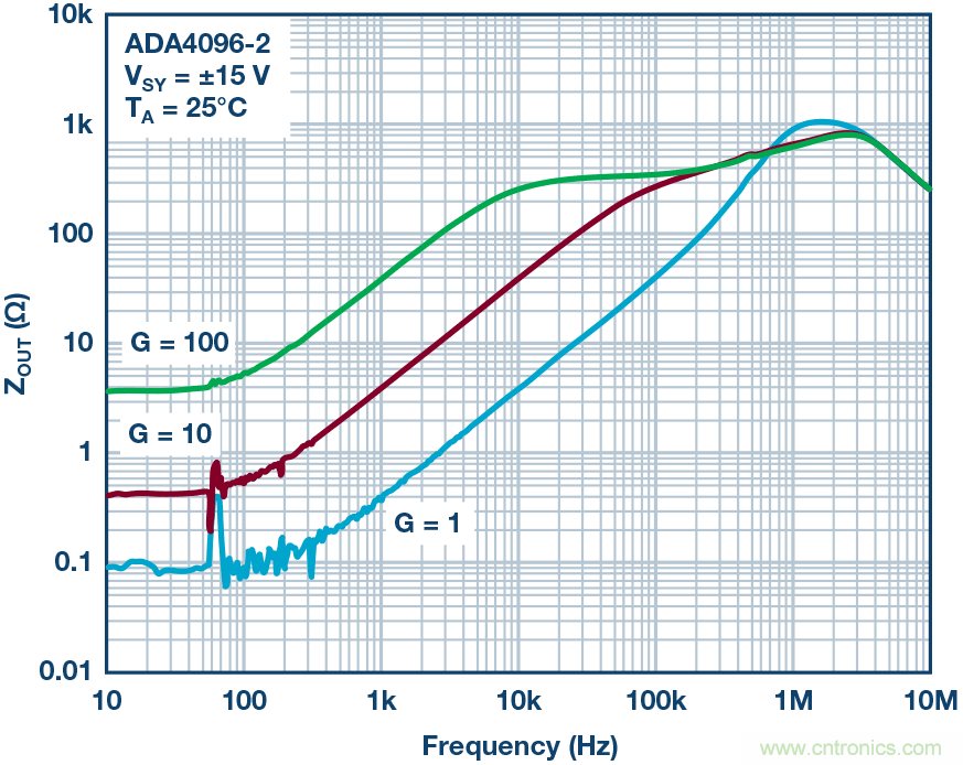 图8b. ADA4096-2数据手册中的闭环阻抗图