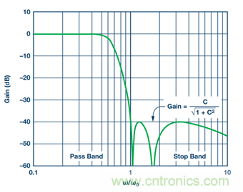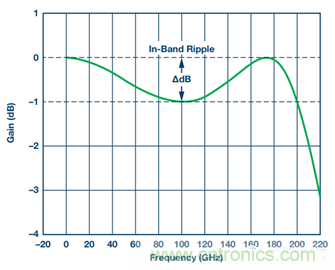 为了确定通带中的最大纹波量,应使该规格等于系统要求的最大限值。这样有助于获得更快的阻带滚降。