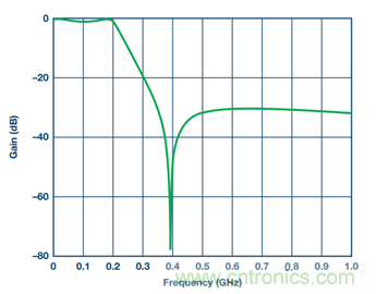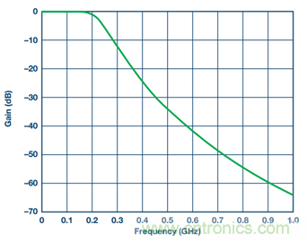 由于接收机IF滤波器用于抑制杂散和混叠信号,因此阻带滚降越快越好。但更快的滚降意味着要使用更高阶器件。一般不推荐采用很高阶的滤波器,原因如下: