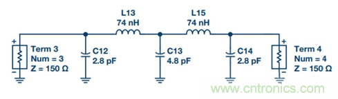 使用滤波器软件,如MathCad,® MATLAB,® 或ADS来设计单端低通滤波器。