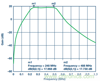 图21. 采用Murata LQW18A电感的滤波器传输响应