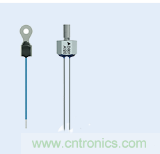 得益于接线片(左图)或螺栓(右图),此类爱普科斯 (EPCOS) 负温度系数 (NTC) 传感器能够为散热片提供一个较好的热触点。