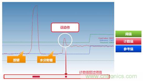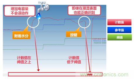 由于潮湿的表面,会增加电容量。即使在潮湿的表面,也能正确识别按键,从而避免了电容自感方式下的触摸误动作。