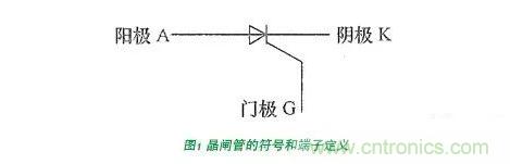 晶闸管也是一个三端器件,按照现有的应用习惯,其三个端子定义为阳极(A,anode)、阴极(K,cathode)和门极(G,gate)。晶闸管的符号以及对应三个端子的定义如图1所示。