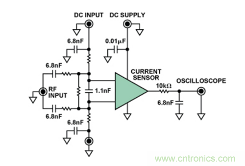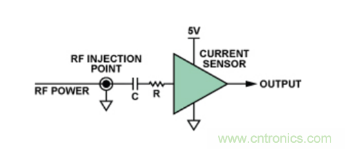 具体而言,这些测试都采用 “直接功率注入法”完成,这是一种通过电容将RF信号耦合至特定器件引脚的方法。根据待测IC的类型,针对不同的RF信号功率水平和频率范围,测试器件的每路输入。图4显示了在特定引脚上执行直接功率注入测试的原理示意图。