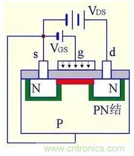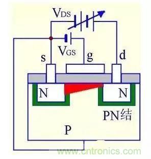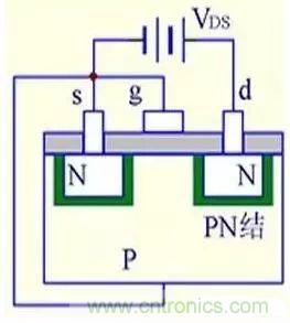 (1) VGS=0时,不管VDS极性如何,其中总有一个PN结反偏,所以不存在导电沟道。
