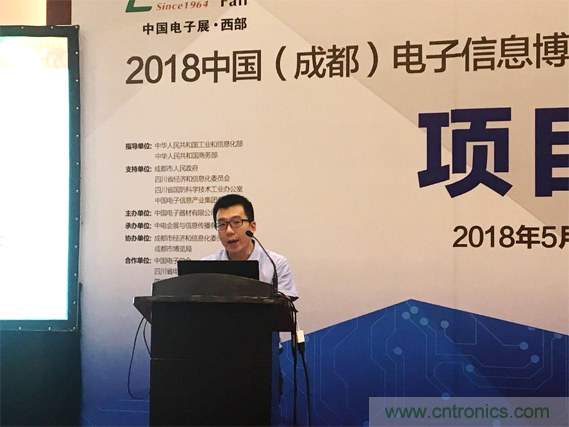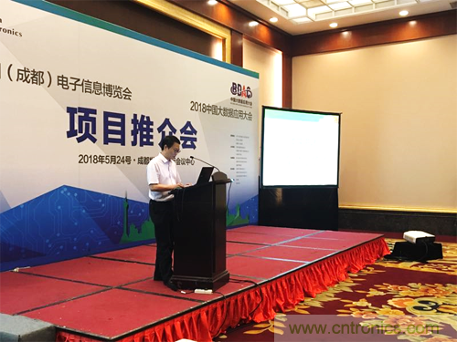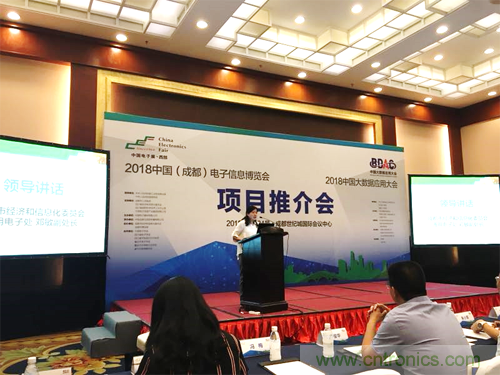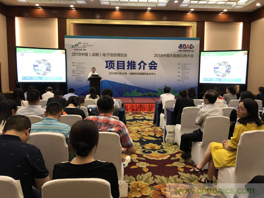 2018年5月24日下午, 2018中国(成都)电子信息博览会暨2018中国大数据应用大会在成都世纪城国际会议中心召开项目推介会?;疃芍械缁嵴褂胄畔⒋ビ邢薰咀芫硭挝爸鞒?,四川省经济和信息化委员会电子处苏平处长,成都市经济和信息化委员会通用电子处副处长邓敏出席推介会并致辞,中国电子器材总公司总经理陈雯海向来宾介绍了2018中国(成都)电子信息博会项目整体情况和2018中国大数据应用大会项目的相关进展情况,四川省大数据产业联合会常务副秘书长朱小军,代表合作伙伴在推介会上进行了发言,四川省其他30家相关学协会等也参加了本次活动。另外,现场还有超过50家媒体及100家成都及四川地区电子信息产业相关企业及组织出席项目推介会。