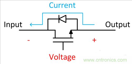反向电流的最常见原因,即反向偏置电压,就是输出上的电压要高于输入上的电压,从而使电流在系统中的流动方向与你希望的流动方向相反。图1中显示了这个情况。