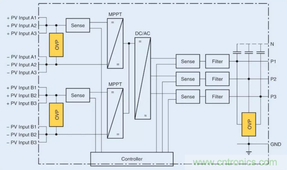 左:太阳能组件与逆变器输入端的过电压?;?OVP)