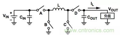 顾问思义,降压-升压转换器结合了降压、升压两种功能。降压-升压转换器的简单工作原理,参见图1,这是个高效的降压-升压转换器简单结构图。