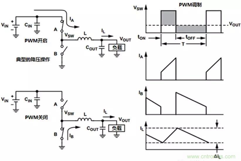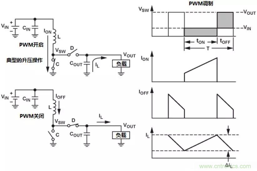 请留意,当Vin在Vout ±10%范围内,此时转换器会进入降压-升压模式。在降压-升压模式下,两种工作状态(降压和升压)会在一个开关周期内发生。此时须要特别注意降低损耗、优化效率,以及消除由于模式切换造成的不稳定性。这么做的目的标是要维持输出电压稳定,以及电感上的电流纹波降至最小,从而得到较好的瞬态性能。