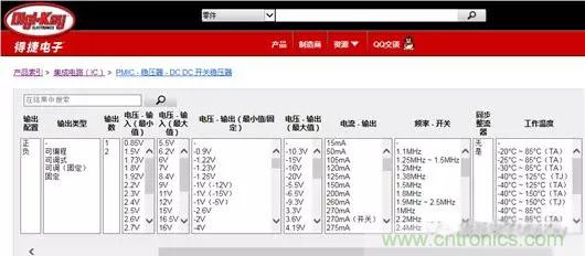图5:Digi-Key官网上的降压-升压转换器的参数选项