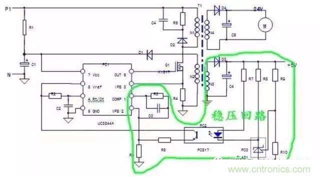 当然,PC1芯片和1,2脚外围元件R3,C3也是稳压回路的一部分。