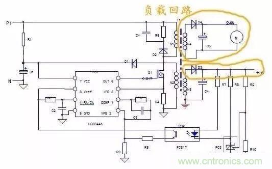 4)负载回路:N3,N4二次绕组及后续电路,均为负载回路,负载回路的异常,会牵涉到保护回路和稳压回路,使两个回路做出相应的保护和调整动作。