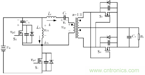 但设采用3.3V甚至1.8V或1.5V的供电电压,所消耗的电流可达20A。此时超快恢复二极管的整流损耗已接近甚至超过电源输出功率的50%。即使采用肖特基二极管,整流管上的损耗也会达到(18%~40%)PO,占电源总损耗的60%以上。因此,传统的二极管整流电路已无法满足实现低电压、大电流开关电源高效率及小体积的需要,成为制约DC/DC变换器提高效率的瓶颈。