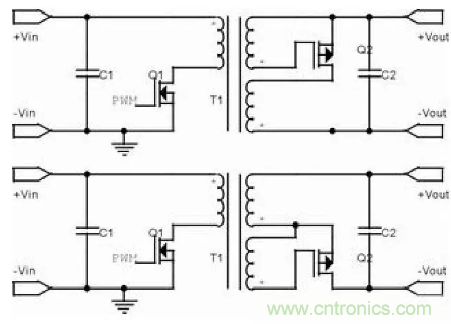 同步整流技术就是采用低导通电阻的功率MOS管代替开关变换器快恢复二极管,起整流管的作用,从而达到降低整流损耗,提高效率的目的。通常,变换器的主开关管也采用功率MOS管,但是二者还是有一些差异的。