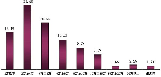 我们这项调查的主要目的是想了解当前电子工程师的生存压力,很显然,年收入2~4万元的工程师占据的比例最大,年收入高于6万的电子工程师的比例则超过了34.7%。由于是全国性的调查,所以存在着地域的差别。通过进一步数据分析可知,年收入超过8万的电子工程师主要集中在上海、深圳、北京三地。其中,上海电子工程师的平均工资水平最高。如果把年收入和当地的房价、日常消费挂钩,上海也是首当其冲的高收入城市,可见此次调查的结果和实际情况基本吻合。正确地了解和看待目前电子工程师的收入水平,有助于我们以正常的心态来面对目前的经济危机。(见图表三)