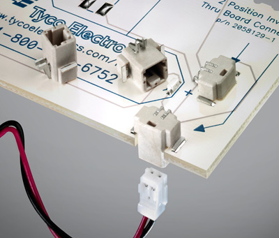 泰科电子此次推出的全新SMT通板连接器具备2位至6位并使用表面贴装技术,运用时穿过电路板使接口转至PCB板的背面,该连接器的反向设计使得在建筑、住宅及某些商业应用上的固态LED 照明的安装操作更为简便。该连接器与标准型Mini CT连接器完全匹配。Mini CT连接器适合24 AWG电线,额定电流为3安培。