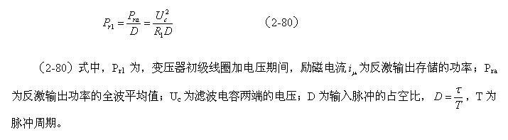 (2-79)式中,Pra为反激输出功率的全波平均值,Uc为滤波电容两端的电压,R1为负载电阻。