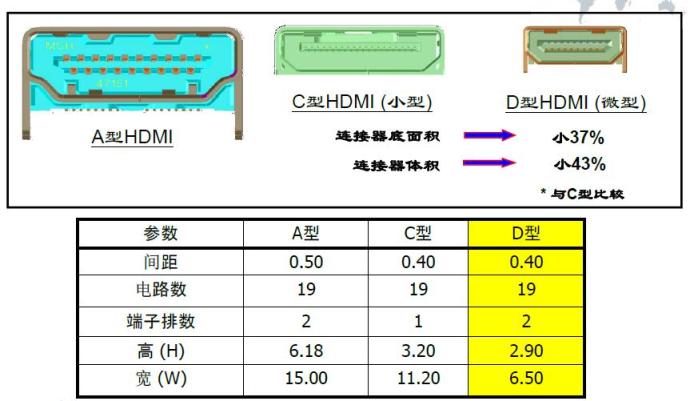 - TypeD(微型)连接器的尺寸C型HDMI连接器的一半