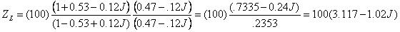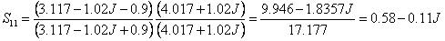 举个例子,用100欧姆阻抗表征的复合回波损耗S11 = 0.53 - 0.12J 转换到90欧姆的如下: