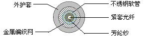 单/双芯室内光缆的结构是比较单一的,最典型的结构如图4所示。外形尺寸小,一般在3mm~3.4mm,并且减小了除光纤外其他材料的用量,也由此提高了光纤的柔弯性能,这一点对室内布线是很有利的。只需用一个连接器即可,与终端设备连接方便,容易被用户所接受,有一定的发展前景。此外,如果将两根松套管对绞或绞在介质中心件周围,再在外面包覆上芳纶丝束和外护套,就可以做成4芯室内光缆,而尺寸依然不大,外径为3.3mm~3.7mm,可用于局域网布线。[page]