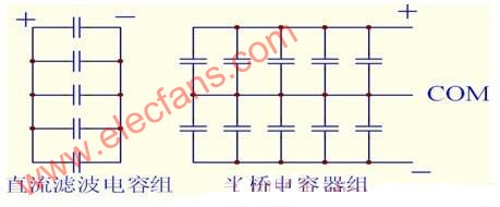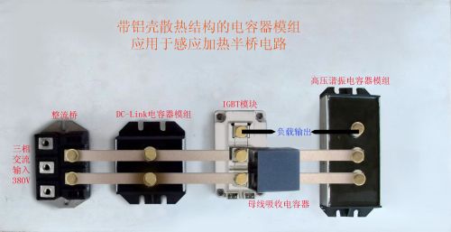 感应加热设备电路结构分为两种.从市面上的产品来看,30KW以内采用的是半桥.30KW以上采用的是全桥.以半桥30KW机芯来看,薄膜电容器的使用情况如下: