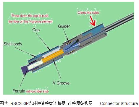RSC250P光纤快速接续连接器采用非预置光纤技术,精密金属V型槽同轴自准可靠固紧,宇特专利的箱砌式双卡紧装置,防缩尾弯设计,一体化防摔抗压结构。成端性能优异,完全达到FTTH光纤到户使用要求。
