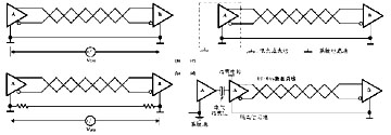 当考虑终端匹配时,有多种匹配方案可以选择。最简单的就是在总线两端各接一只阻值等于电缆特性阻抗的电阻(图2a)。大多数双绞线特性阻抗大约在100Ω至120Ω之间。这种匹配方法简单有效,但有一个缺点,匹配电阻要消耗较大功率,对于功耗限制比较严格的系统不太适合。另外一种比较省电的匹配方式是RC匹配(图2b)。利用一只电容C隔断直流成分可以节省大部分功率。但电容C的取值是个难点,需要在功耗和匹配质量间进行折衷。除上述两种外,还有一种采用二极管的匹配方案(图2c)。这种方案虽未实现真正的"匹配",但它利用二极管的钳位作用迅速削弱反射信号,达到改善信号质量的目的。节能效果显著。