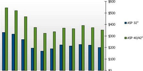 液晶电视面板的价格从2010年第二季开始再次的下跌,特别是在32寸和40/42寸的产品上,这是最受欢迎的两种尺寸;相较于2009年第三季,这两种尺寸的面板价格分别在2010年第三季下跌了10%和5%。“2010年第二季和2010年第三季下跌的面板价格,将会直接地影响到2010年第四季假期中的零售价格。如果消费者对价格下跌仍旧相当敏感的话,这将会帮助美国当地市场的需求上升。” Gagnon总结。