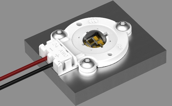 此外,该款产品通过利用一个定位器(一个塑料框架,在安装插座之前,首先将其放在散热片上,将LED正确定位到位),使散热器上的丽讯LED定位简化。定位之后,仅需3颗市场上销售的#4或M3螺丝钉,即可将插座迅速固定到散热片上。