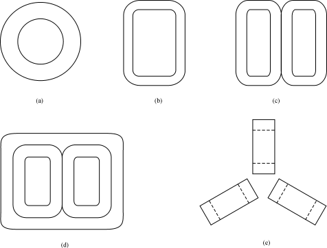(a)环形(b)单框形(c)双框形(d)合成三框形(e)120°布置三框形