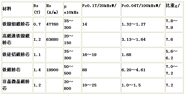 表1磁粉芯的主要性能