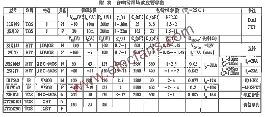 音响常用场效应管的参数如下表: