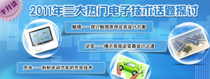 在“苹果”和“环保”概念下,触摸技术、逆变器技术以及新型充电技术讨论将在延2011年继续延伸。本期半月谈将与大家一起探讨触摸屏在设计的时候需要注意哪些要点,如何提高光伏逆变器效率以及新型充电技术的技巧。
