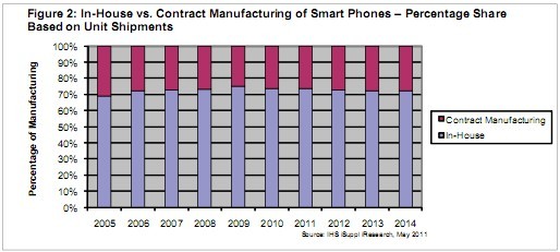 - 2014年合同制造商生产的手机份额将只有27.9%