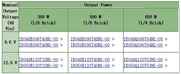VI BRICK™ Intermediate Bus Converters系列母线转换??楣灿?2种型号可供选择。以IB050E120T32N1-00为例,该产品支持宽幅输入,输入电压范围为36V-60VDC,4:1电压转换,输出不稳压。1/8砖最大功率为300W,效率高达97.8%,输入输出端隔离电压为2250VDC??仄德矢叽?MHz,超低噪音,满足国内国际各类安规标准,提供过压/欠压保护、过温保护和短路?;?,可承受温度范围为-40℃至+125℃。广泛适用于通讯、军工、数据传输、服务器设备系统使用。中电华星认为此系列产品是解决通讯设备产商母线电源??楣┯Φ墓丶?。