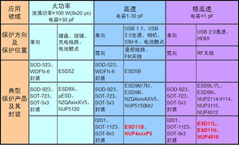 表1:便携设备ESD?;びτ梅掷嗉暗湫捅;げ?其中红色字体为领先产品)。