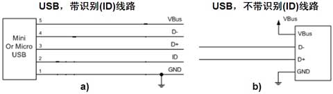 USB 2.0接口在便携设备中的应用范围非常普及,在用户的日常使用中也有着极高的使用频率,故需要为高速的USB接口提供可靠的ESD?;?。图2显示的是速度达480 Mbps的USB 2.0高速应用在带识别(ID)线路及不带ID线路两种情况下的简明结构示意图。[page]