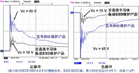 图1:安森美半导体集成硅ESD?;ぴ涤斜染赫骷诺那坏缪剐阅?。