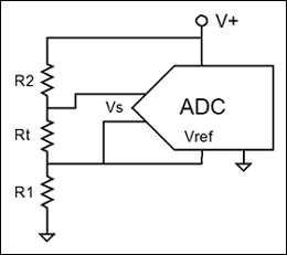 与之相似的采用电流驱动传感器和单元件阻性传感器(如RTD)的技术已不常用了。这些电路中ADC的灵敏度会随温度或电源电压的变化而变化。虽然如此,ADC和传感器输入的组合还是相当稳定的。