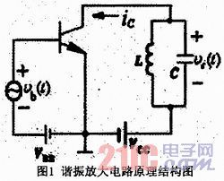 谐振电路原理图中的LC并联谐振回路用电阻Rc代替,就是典型的共发射极电路。它的电压放大倍数是Au=βRc/rbe(这里是其绝对值,没有考虑相位问题)。由于Rc对所有的频率分量都呈现出相同的阻值(阻抗),故这个电路没有频率选择作用(即在很宽的频率范围内,其放大倍数是一样的)。若Rc用LC并联谐振回路代替,由于谐振阻抗的频率特性,使得在谐振频率点及左右极小的频率范围内呈现出很高的阻抗,使电路的电压放大倍数很高,而离开谐振点的其他频率范围都呈现出极低的阻抗(理想状态下可以看做为零),使电压放大倍数接近于零,于是这个放大器就有了对某一频率有选择性的放大特性,称为谐振放大器。