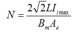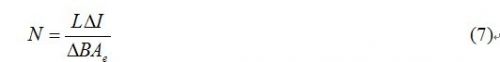 其中:N-电感线圈匝数;Ae-磁芯有效截面积;Bm《Bs(100)-最大磁通密度,为减少损耗,选择饱和磁感应的70%。