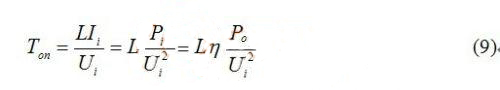 其中:Ui、Ii为输入电压和电流有效值。在一定输入电压和输入功率时,Ton是常数。当输出功率和电感一定时,导通时间Ton与输入电压Ui的平方成反比。