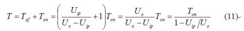 可见,输出电压Uo一定大于输入电压Uip,如果输出电压接近输入电压,在输入电压峰值附近截止时间远大于导通时间,开关周期很长,即频率很低。