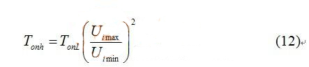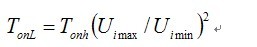 如果首先决定最低输入电压(Uimin)对应的导通时间为TonL,最高输入电压(Uimax)的导通时间为