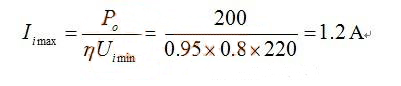 例:输入220V±20%,输出功率200W,采用临界连续。假定效率为0.95.